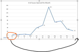 I'm currently tracking # of monthly issues submitted in line graph (per below attachment). Now that new year has started, any issues opened in Jan. '25 are appearing at beginning of graph instead of...