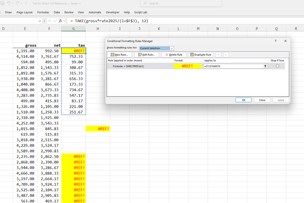 Mind you when I posted a discussion on Chandoo it didn't meet with overwhelming support, though subsequent events in the form of spilt ranges have made my life so much easier! The post did however stimulate more discussion than I had anticipated.