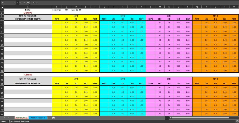 For example if a simplified Workouts sheet looks like this: