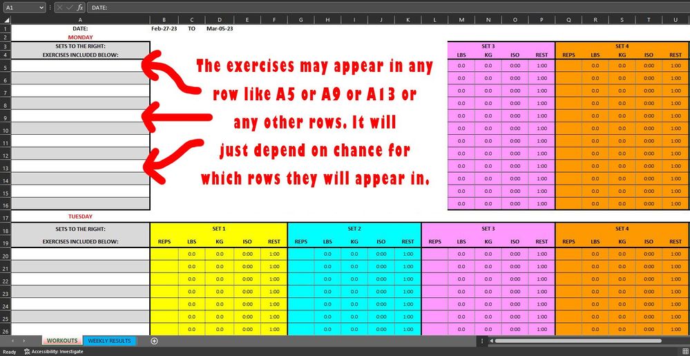 Note that the exercises are listed in a completely different order on the Workouts sheet.
