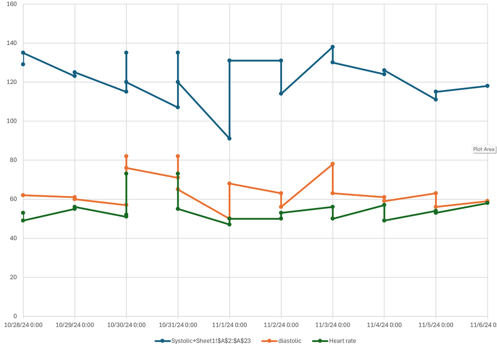 I have variables on the Y axis that I want to plot against date and time of day. My data input format is mm/dd/yy hh:mm (10/30/24 20:47). When plotted on a line chart, all of the variables are shown on the same date regardless of the time. How do I get the chart to show the time of day?