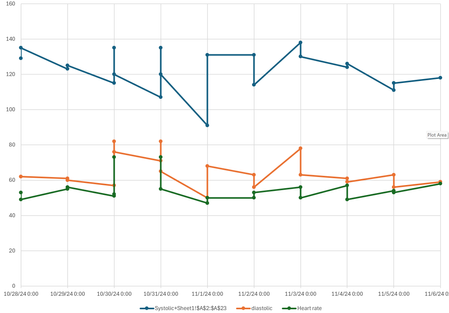 I have variables on the Y axis that I want to plot against date and time of day. My data input format is mm/dd/yy hh:mm (10/30/24 20:47). When plotted on a line chart, all of the variables are sh...