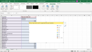 Hi, I'm trying to plot world map on excel but I keep receiving a "sorry" message. Any help will be appreciated. Thanks.