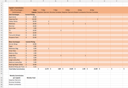 Hi, my business gives commissions to our drivers (called “captains” as shown in the Excel screenshot). Their commission is 10% of the sale price of a surcharge they sell. I want to track...