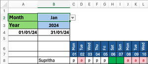 You should have a separate sheet that lists the codes for the entire year. You can then use a VLOOKUP or XLOOKUP formula to display the codes on the sheet from your screenshot.