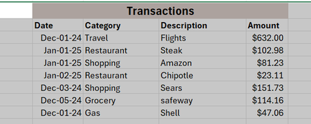 Hi, I'm creating a personal budget sheet where i have one tab that tracks all transactions (example entries below). This tab will have ALL transactions. I'd like to have a summary tab where I ...