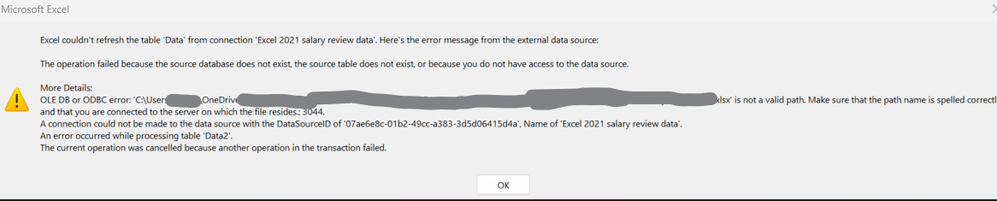 Attaching the Excel error message, which will appear when my colleagues are trying to refresh the Power Pivot table. Basically, my user name just doesn't exist for them :(.