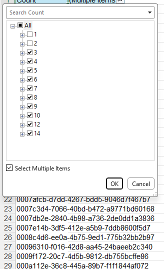 Hello - I combined a handful of .xlsx files and there's about 5 million rows total. I'm trying to identify duplicate "project IDs" (the long strings below in rows 22-29), basically what this filter i...
