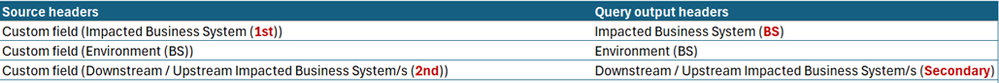 v2 Is the same as v1 + it maps "2nd" as "Secondary" but not only:As you see above "1st" has been replaced with "BS" for "Custom field (Impacted Business System (1st))". In the used data set this Custom field only required a renaming (no merge). Reading a comment in the UpdatedSampleData you shared I understood (and I could have misunderstood) that when there's only 1 Custom field, i.e. "Custom field wxyz (1st)", "(1st)" should always be replaced with "(BS)"