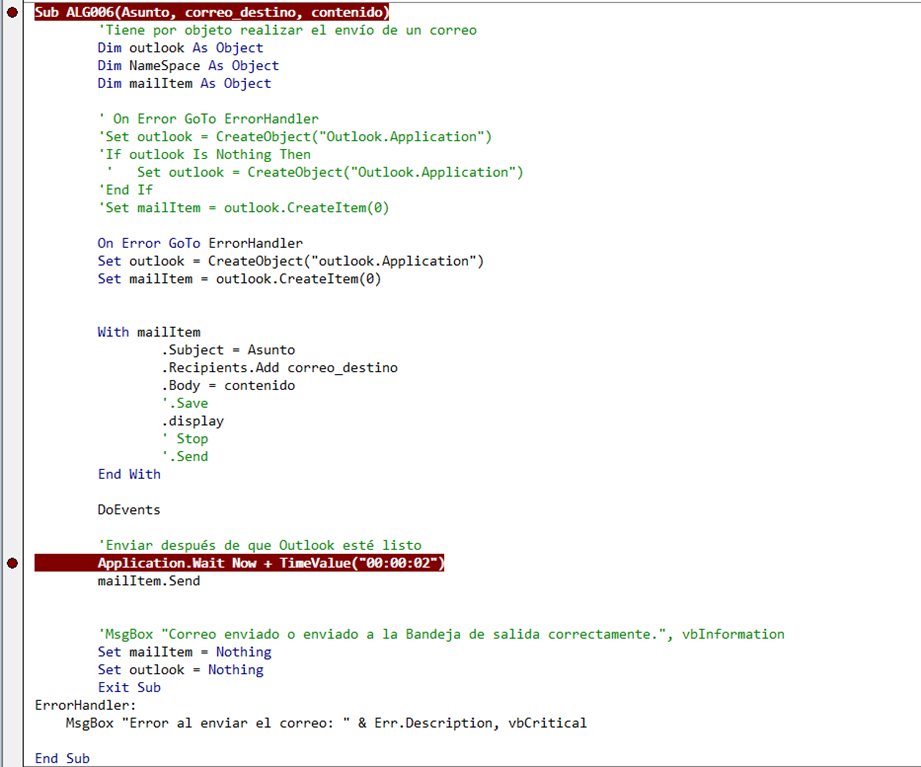 Se presenta cada vez que ejecuto Macro para enviar correos:
