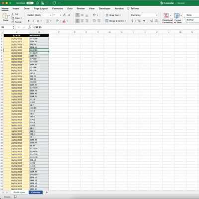 Profit/Loss per Day Calendar