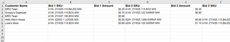 Hi, We are currently using a Form to populate a Smartsheet that contains the SKUs selected by the customer for bidding and that customer's bid for that particular SKU. We are exporting this int...