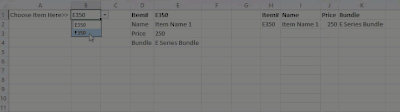 When I go to sheet 1 that has my template, I can enter the item # (or name or any sort of reference that would make this work) and Excel autofills the Name, Price and Bundle for that product into the appropriate cells on my template. Essentially "pulling" that data from sheet 2 to auto fill my cells.