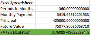 The payment must be large enough to cover the first period interest plus some principal. Since the payment is 3419.65 and principal is 425000, the periodic interest rate must be less than 3419.65/425000 = 0.804623529411765%.