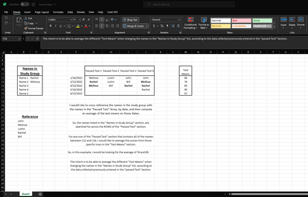 So, the number of options in the study group, will always match the number of columns in the passed test section. As for the different name errors, I am using data validation to limit selections.