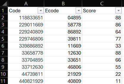 I'll be working with three columns, including column A, which has the full number for an event; Ecode, which will have a partial number (the last five digits of column A); and column C, which will ha...