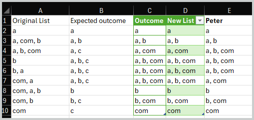 PeterBartholomew1 , I also don't know which exactly logic shall be behind. But if we change letter on word, e.g. "c" on "com", and assume expected outcome shall be the same, we have different results