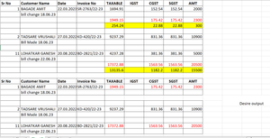Hey excel family. I am stuck in this issue while summarizing report. What in the sheet is first row is the customer data with its transactions values. Now below the customer there is a bill...