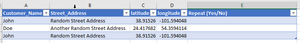I'm trying to find repeat customers for our company. I'm trying to return value on the "repeat" column if 4 different columns match (Customer_Name, Street_Address, Latitude, Longitude). What's the fo...