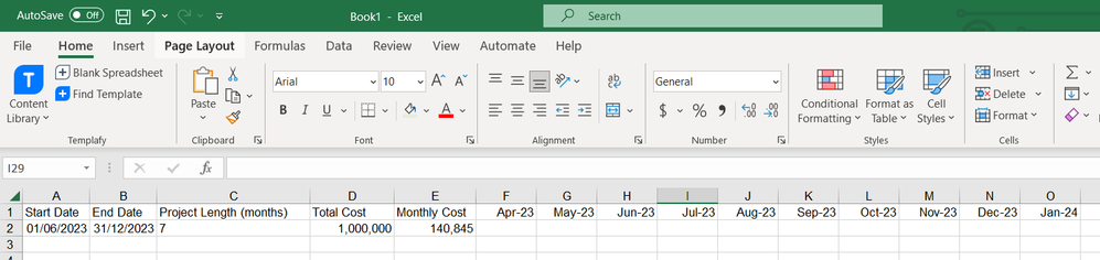 - In April 23 and May 23 the monthly cost would be 0 because the project does not start until June