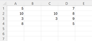 =IF(ISNUMBER(XMATCH(A1:A4, D1:D4)), "", A1:A4)