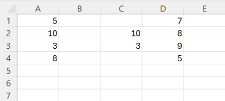 I assume that you meant the array D1:D4 instead of D1:D4.