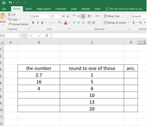 Hello, I need to know how to make a formula that will round a number to a set of other number ex. in the pic 2.7 should be rounded to 5 , and 16 to13 and 4 to 5 or 3 how to make this formul...
