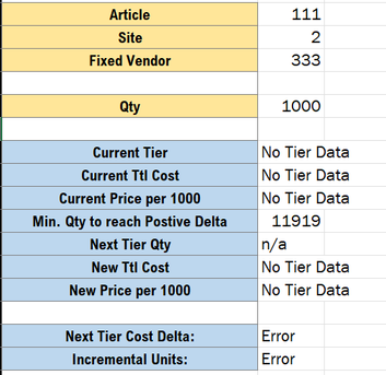 The goal would be able to upload any number of sets of those article, site, vendor and QTY's groups, and be able to simultaneously run them all to gather the needed information to vastly speed up this process.