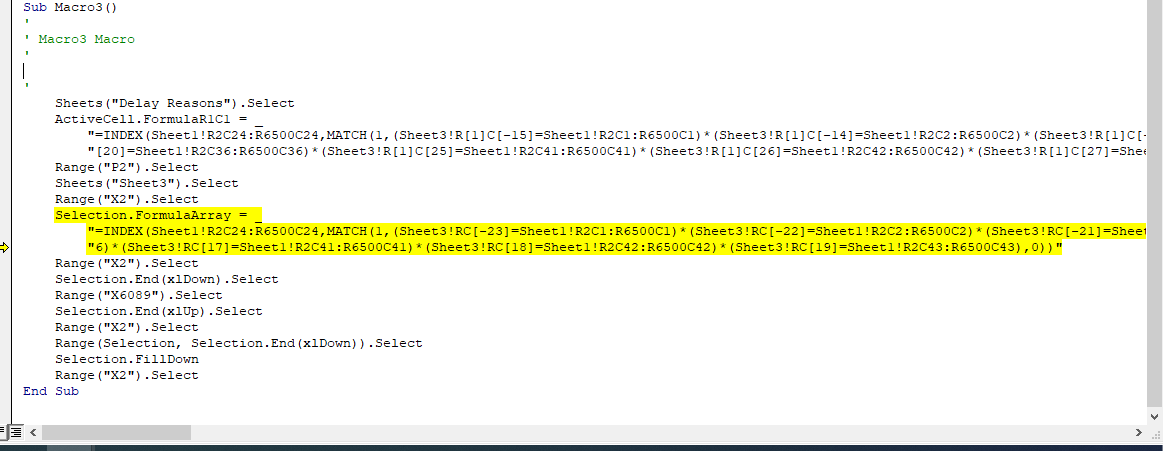 Run Time Error 1004- Long Array Formula in VBA (How to split the code in VBA)