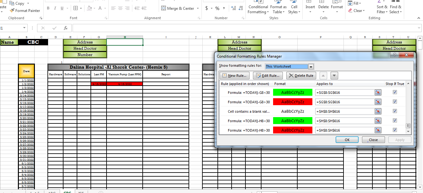 Here i have the exact same condition for specific set of columns each has 3 condition but they all have the same condition with the same parameters