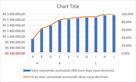 Hi, I'm making a Pareto chart (ABC Chart), but when changing the maximum and minimum limits of the values (R$) it ends up showing a negative value and I would like it to start at R$ - (R$ 0.00). How ...