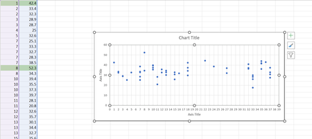 Hi, I have the below scatter plot. It is showing bird nexts in the first column and size of the bird eggs in the second column. Everything plots correctly except for the fact that nests that don't exist, like nest 6 below, are still showing up on the x-axis. I would like to remove this value entirely as it does not exist. How can I do that?