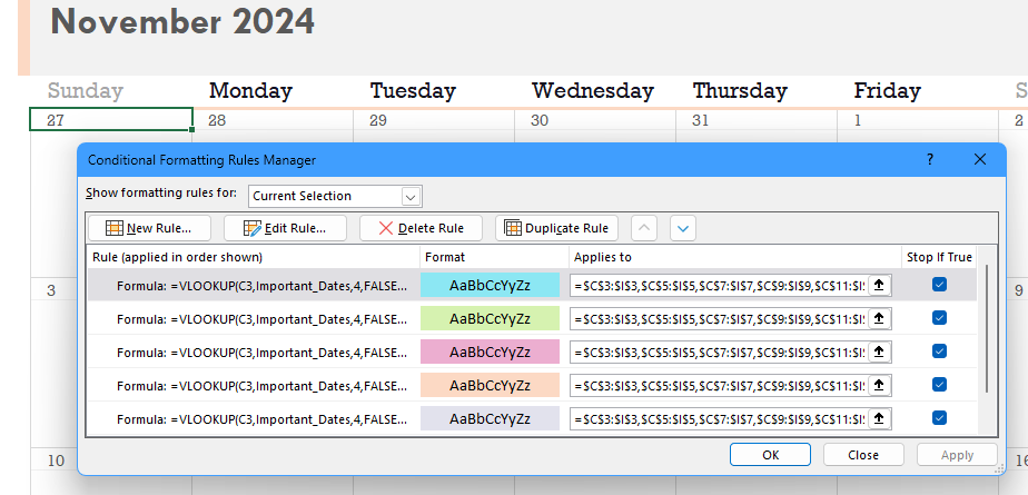 With this set up, our calendar will run based on calendar year, not school year, so my currently calendar will finish out 2024 and then I'll start a new spreadsheet for 2025 to start in January. That said, Once I have a full year set up, I will be able to just "Save As" and give it a new name and then make necessary adjustments from there.