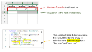 Hello everyone, I have some large excel files with formulas that I am trying to copy down via a script and need help finding the right command (need to use online excel so NO VBA). Here is a (great...