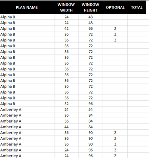 Hi.     I'm working on a spreadsheet and I want to create a script where it will look at the plan name (Column A), then take the window sizes from Columns B and C and the Optional "z" and total them ...