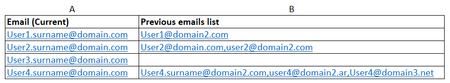 Hi forum, I need help because I am out of ideas. I need to get current emails for my users based on previous emails they could have. I tried combining functions search, vlookup, match, index, etc. ...