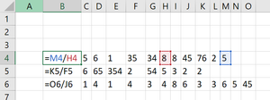 =INDEX(4:4,MATCH(9.99999999999999E+307,4:4))/INDEX(4:4,MATCH(9.99999999999999E+307,4:4)-4)