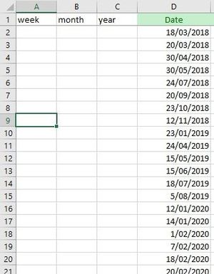 hi! I would like to separate my date into weeks, months and years in separate columns, is there a function or code for this? Thank you.
