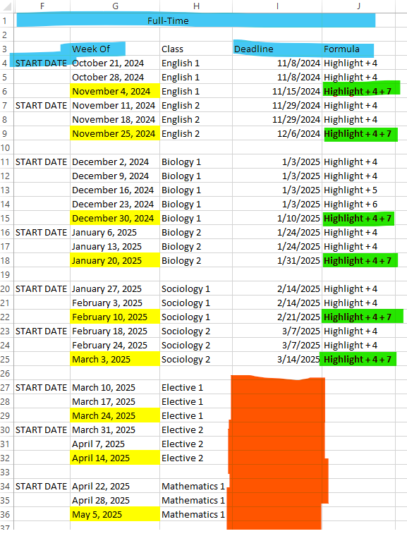 This is a rolling list, so new start dates will be added at the bottom, and then we need to calculate and publish the deadlines as the new start dates are added at the bottom. So on the Full-Time data set, you can see where new Start Dates have been added. When new start dates are added, I need to find an easy way to go in and add the deadlines.