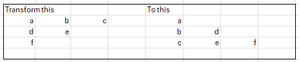 If you have a triangular table of a certain shape, can it be reshaped so that rows going across become columns going down but with padding at the beginning?