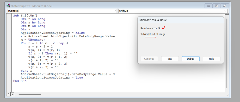 Sub ShiftUp()