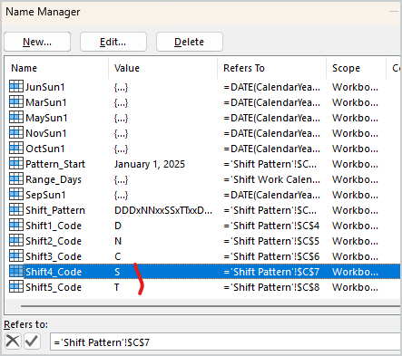 Next in Name Manager add names for these shift codes, here are Shift4_Code and Shift5_Code