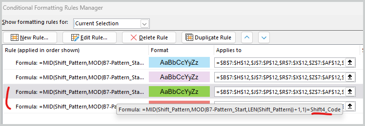 Next in calendar Conditional Formatting duplicate rule for day formatting