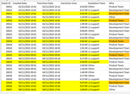 I have a excel data sheet which is an extract from a support tool. The extract is shown in the picture below. Column A - Ticket ID. The ticket ID is unique to each case but appears multiple time as ...
