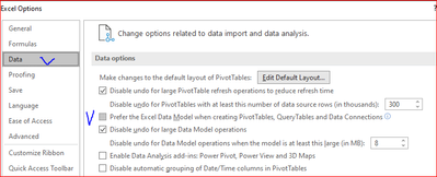 - acubed333Copper ContributorHi Sergei, Am having same issue but looking into File->Options->Advanced->I don't see a Data section to be able to go to the "Prefer the Excel Data Model..." is disabled. Or creating Pivot Table disable "Add this data to the Data Model" in Pivot Table creation window