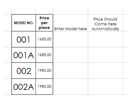 1. If you have model numbers and prices in Columns A and B, you can use VLOOKUP to retrieve the price by entering a model number.