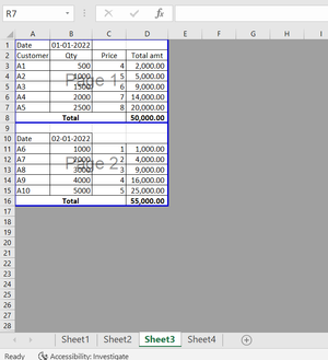 I have an excel work book at my working place. On sheet 3 I have date, customer, qty, price and total amount (see pic 1) and in the sheet 4 I have summary for each day (see pic 2). I fill in the deta...