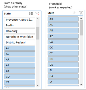 Hello,     I have an Excel Data Model table that contain a hierarchy called Geography, that contains the following levels:  1. Country  2. State  3. City     When I insert a slicer for this hierarchy...