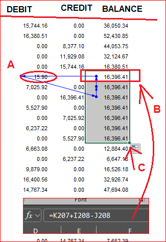 The adjustment (A) was a calculation using the Balance column value--which I replaced with a formula!