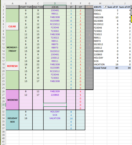 I do about 30 employee time cards every week, so the job #'s are constantly changing. We need this info to know how much to charge our customer per job that is done based off of the hours th...